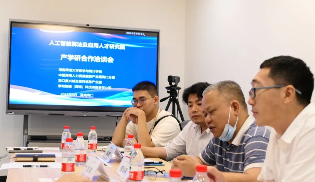 9月26日,海南师范大学数学与统计学院党委副书记曾令明、数据科学系主任王鹏一行到海口复兴城互联网信息产业园参访并参加《海南自由贸易港人工智能算法与应用人才研究院》产学研合作洽谈会,与会嘉宾对项目进行了深度探讨,对合作事项达成一致共识。
